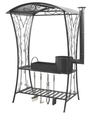 эргономическом дизайне. Особенностью мангала является мангальная вставка с печью под казан. Имеет высокую вытяжную трубу самоварного типа. Дым, выходящий из трубы, не мешает окружающим. Мангал удобен для хранения и транспортировки так как имеет сборно-разборную конструкцию. Перед использованием по назначению необходимо закрепить покрытие – обжечь в течение примерно 0,5 часа. Покрытие – термостойкая кремнийорганическая эмаль – набирает прочность только после первого обжига.