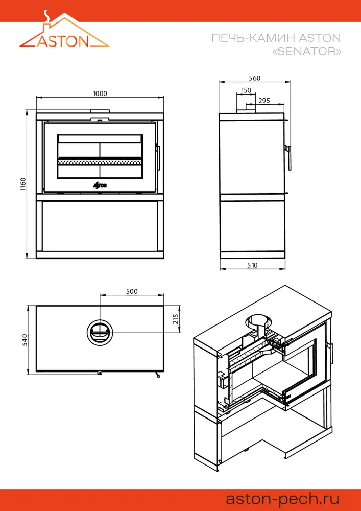 Печь – камин АСТОН Сенатор, рассчитанная на подовое горение дров.