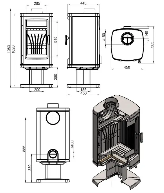 Высокая теплоотдача – мощная топка из чугуна с толщиной стенок 8 мм обеспечивает равномерный прогрев помещения
